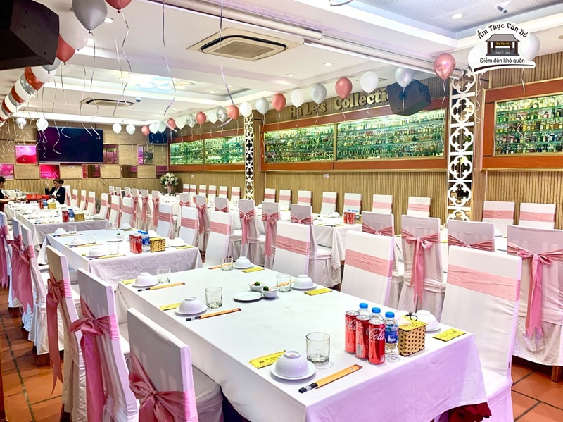 Ẩm Thực Vân Hồ được thiết kế với nhiều khu vực khác nhau, giúp thực khách có thể lựa chọn không gian phù hợp nhất với chủ đề cưới của mình.