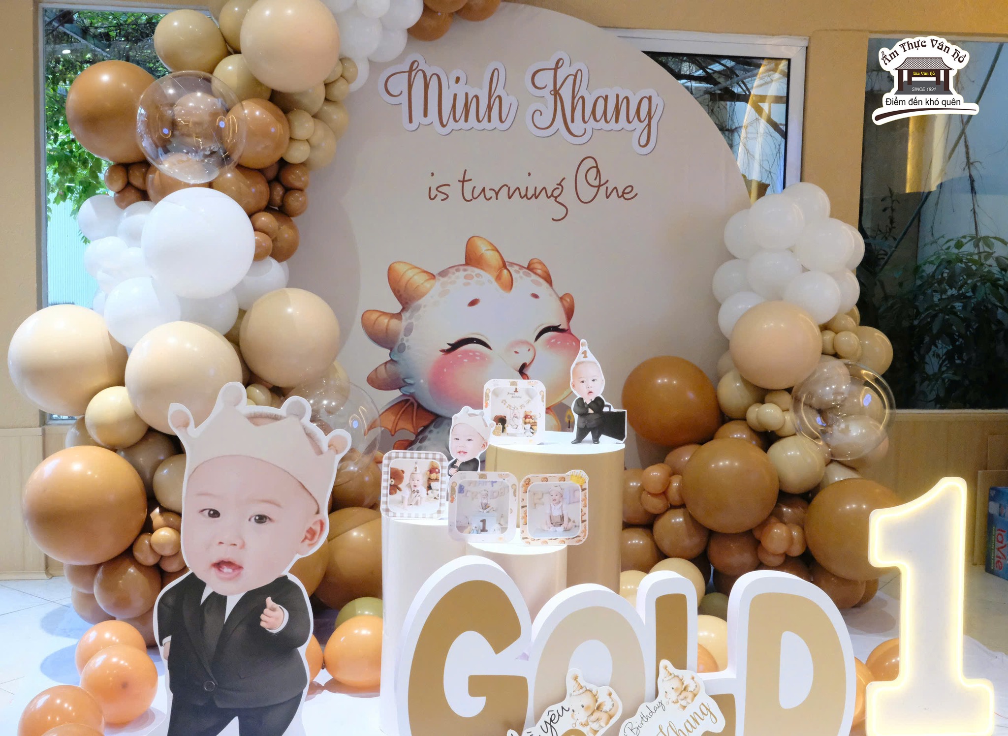 Trang trí tiệc Sinh Nhật Bé Minh Khang – Gold Concept khủng long dễ thương