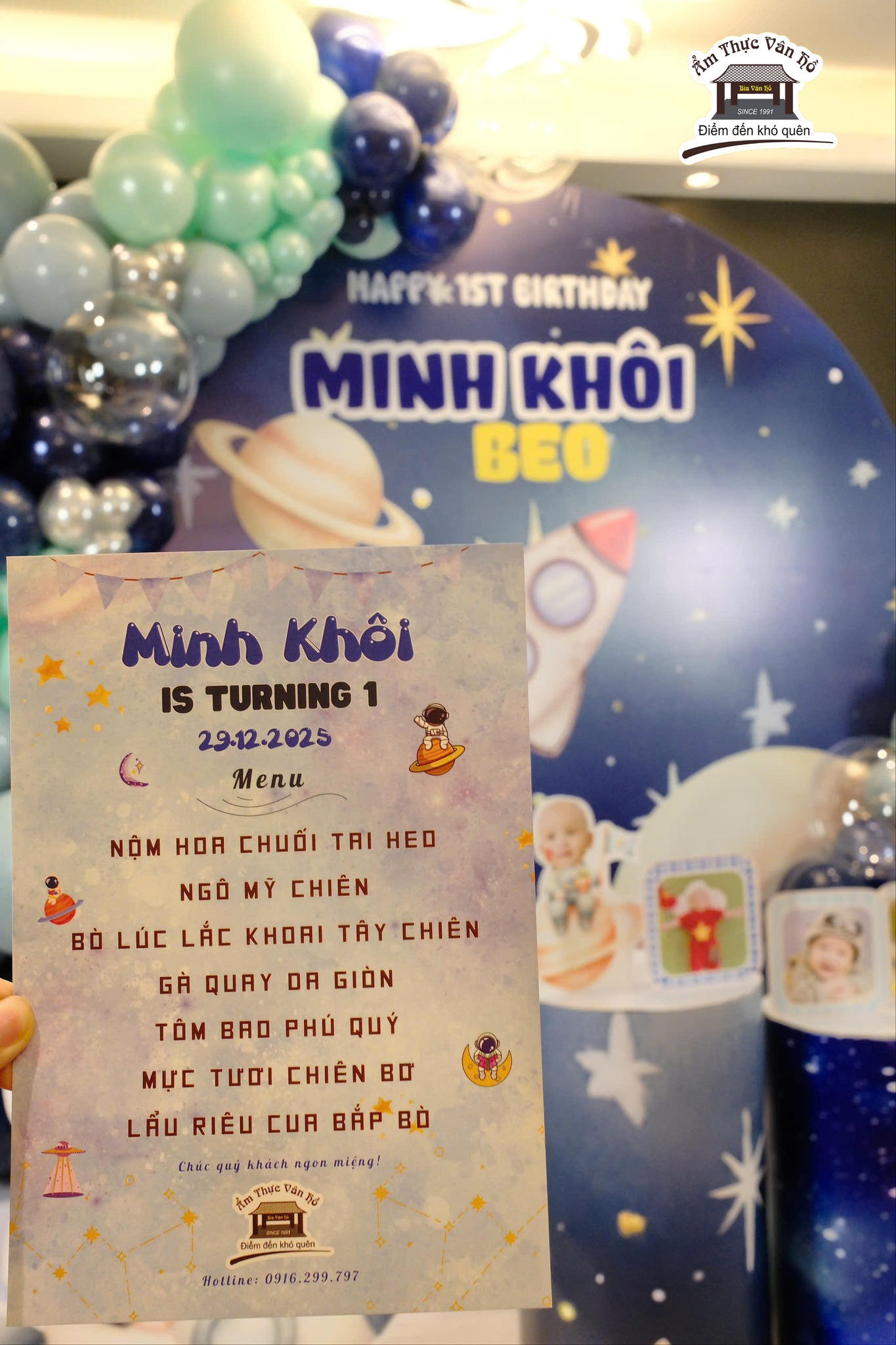 Cảm ơn gia đình bé Minh Khôi đã lựa chọn Ẩm thực Vân Hồ là nơi tổ chức tiệc sinh nhật 1 tuổi của bạn nhỏ. Mong rằng gia đình Quý khách đã có những trải nghiệm tuyệt vời cùng người thân và bạn bè tại Vân Hồ.